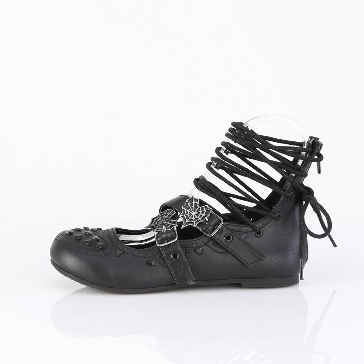 Ballet Flat Eyelet Lace-Up Ankle High Shoe Featuring Criss-Cross Eyeleted Heart Spider Wb Buckle Strap & Overall Heart Studs & Heart Shapped Design Across the Foot, Back Zip Closure