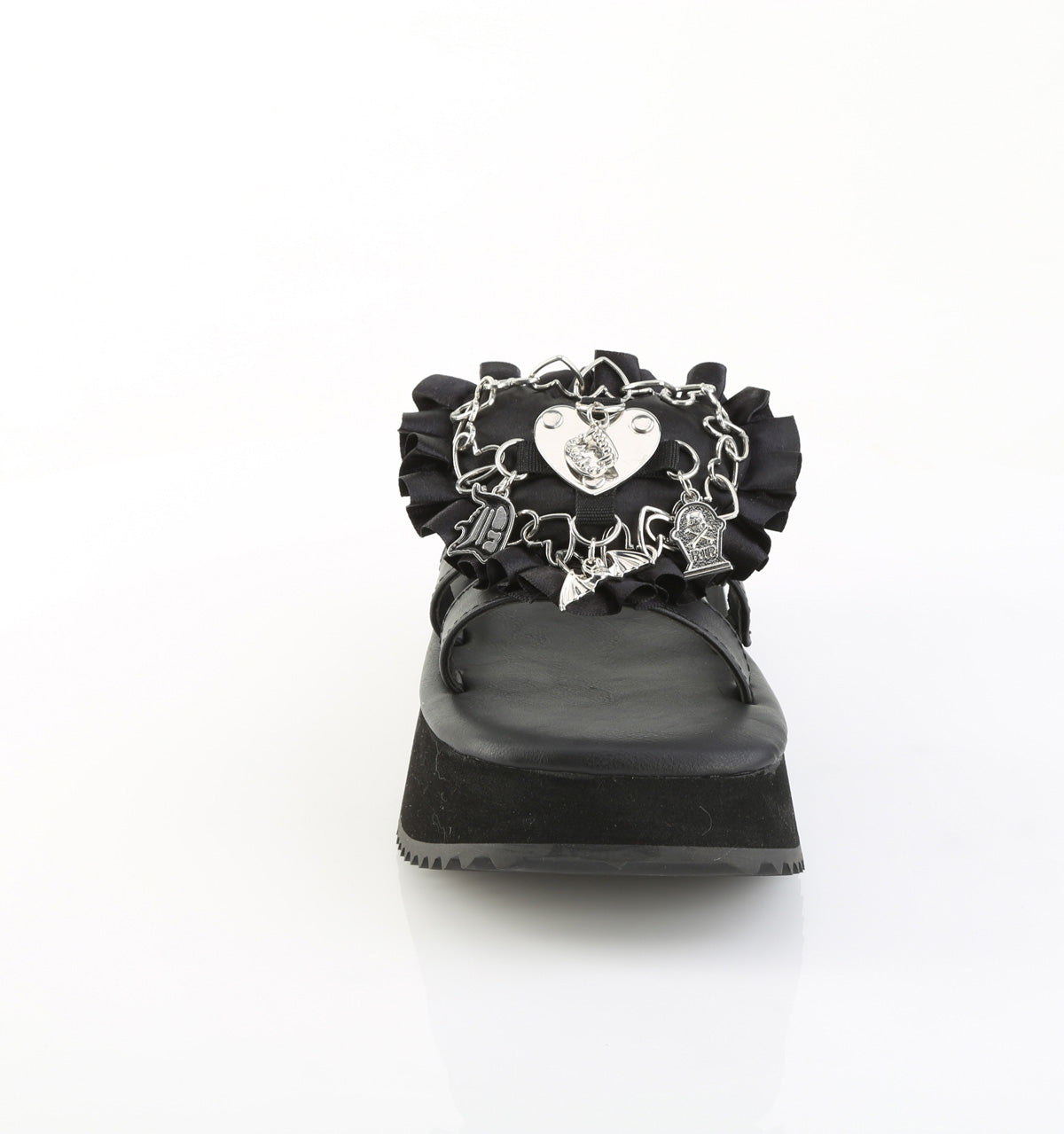 DEMONIA FLIP-16 - Black Vegan Leather-Satin Sandals